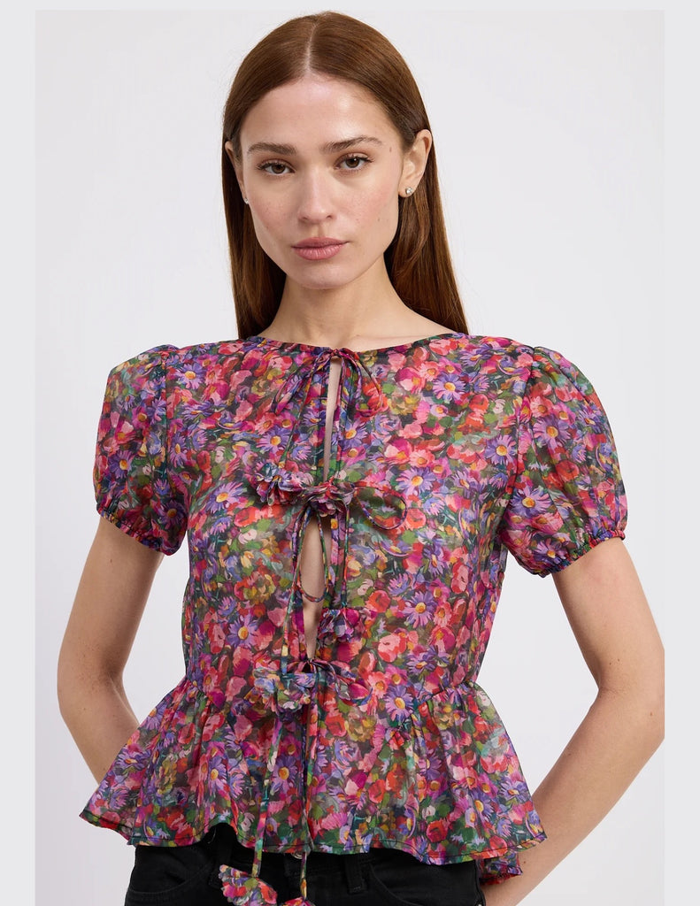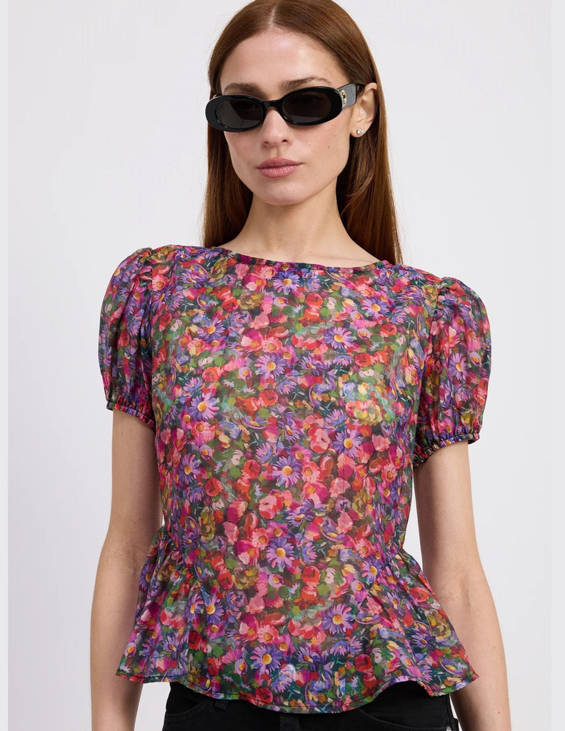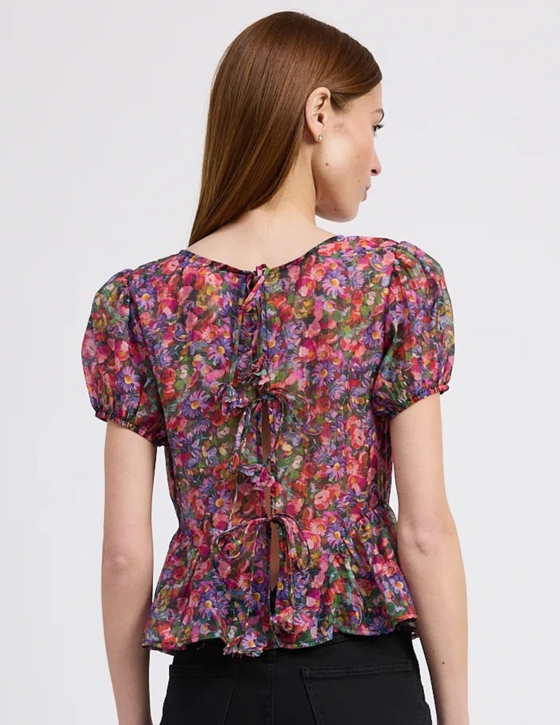 Sheer Reversible Tie Back Detail Peplum Blouse.