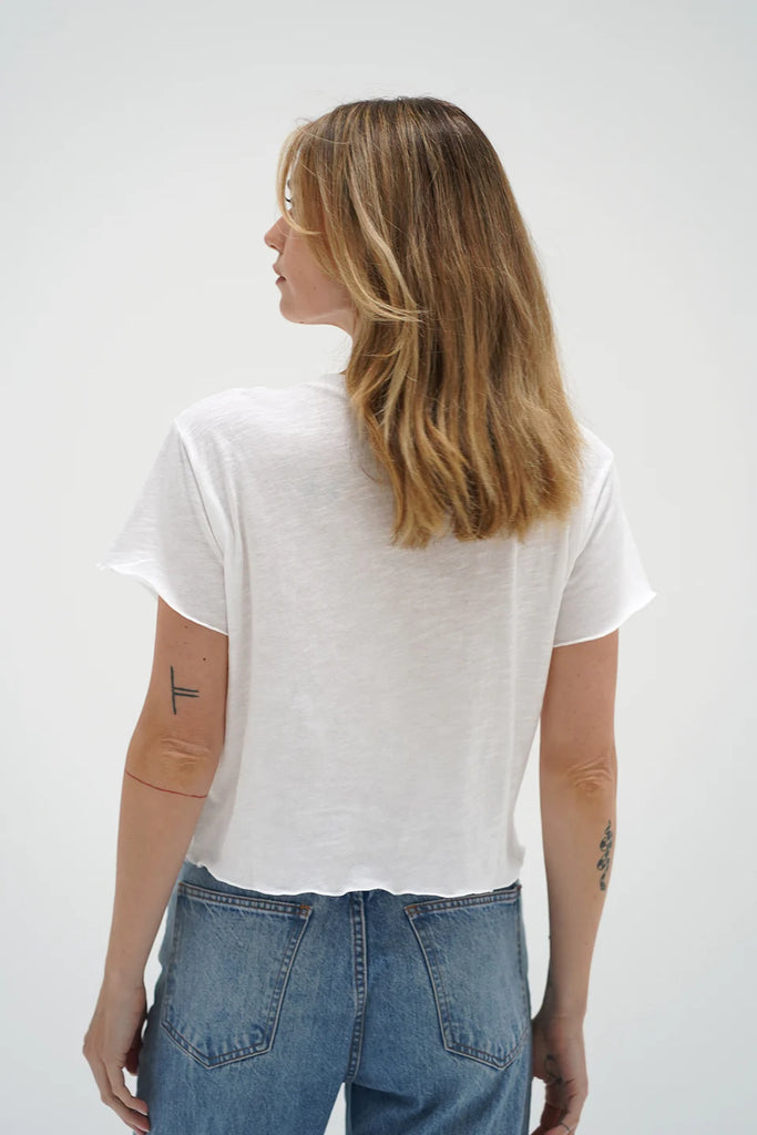 The Tropic Tee is a cotton slub, slightly cropped fitting top, with a lace up front.
