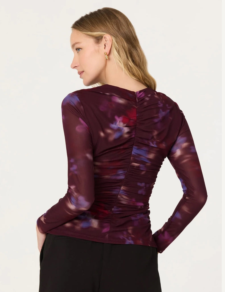- Floral Mesh Ruched Top