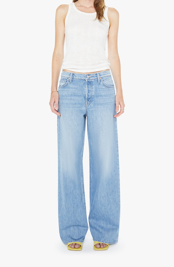 High-waisted wide leg jeans with a zip fly, a long 32-inch inseam and loose, low-slung fit. Made from rigid SUPERIOR denim, Last Bite is a faded vintage blue with subtle whiskering.