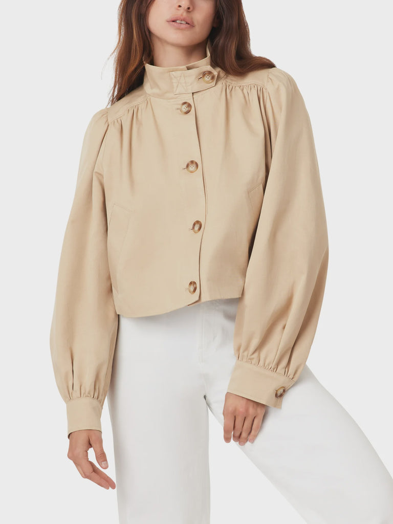 The Cropped Swing Jacket features a relaxed, flared silhouette that swings away from the body for movement and comfort. Designed with a cropped length, it pairs seamlessly with high-waisted denim or skirts for a polished yet easygoing look.