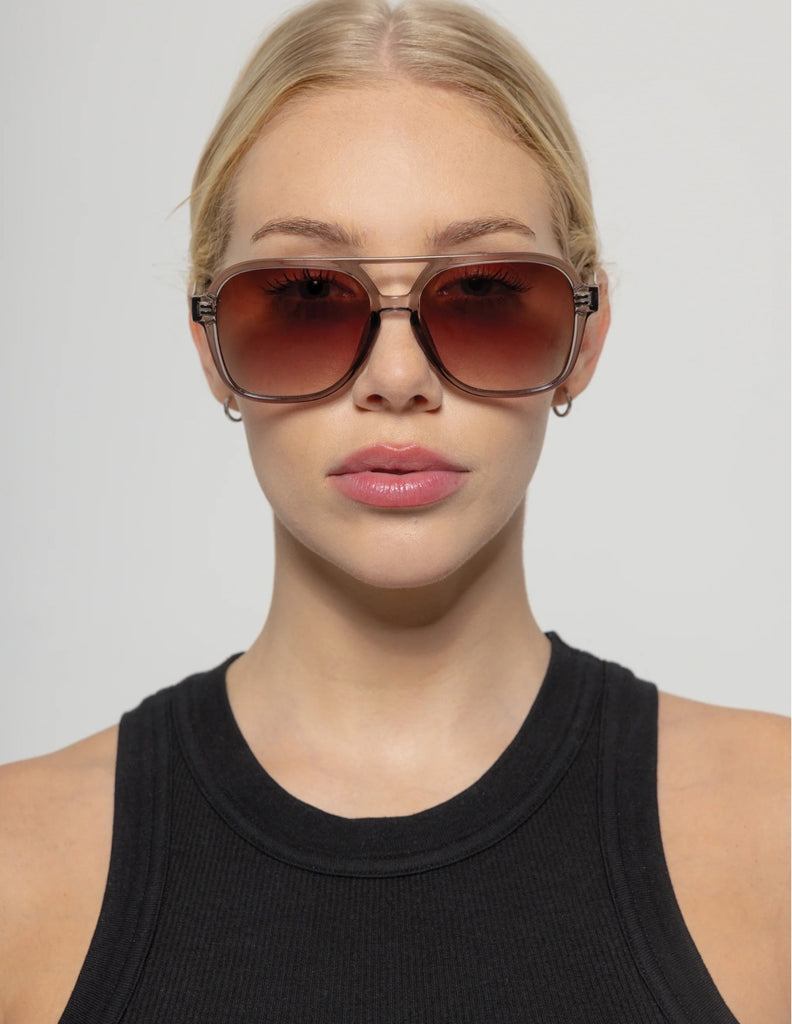 Effortlessly cool, KORI is our refined aviator reimagined in a transparent olive frame with warm brown faded lenses. The slimline silhouette blends vintage inspiration with a modern, minimalist twist, offering a lightweight feel without compromising on impact.